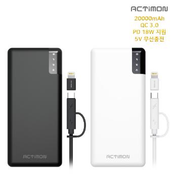 액티몬 급속 무선충전 보조배터리 20,000mAh (C타입+5핀 2in1케이블+8핀젠더 포함)