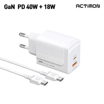 액티몬 CtoC GaN 지원 PPS PD 40W C포트 초고속+18W USSB 고속 가정용 충전기 (MON-PD40W-CU-T7-CP)