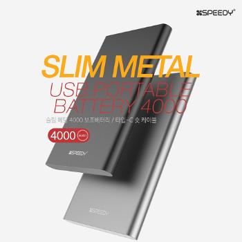 스피디 슬림 메탈 보조배터리 4,000mAh (C타입 케이블포함)