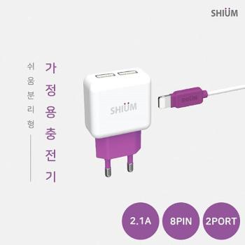 쉬움 8핀 USB 2포트 분리형 가정용 충전기 (2.1A)