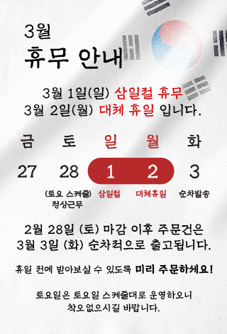 [휴무일안내] 26년 3월 2일, 삼일절 대체휴무일