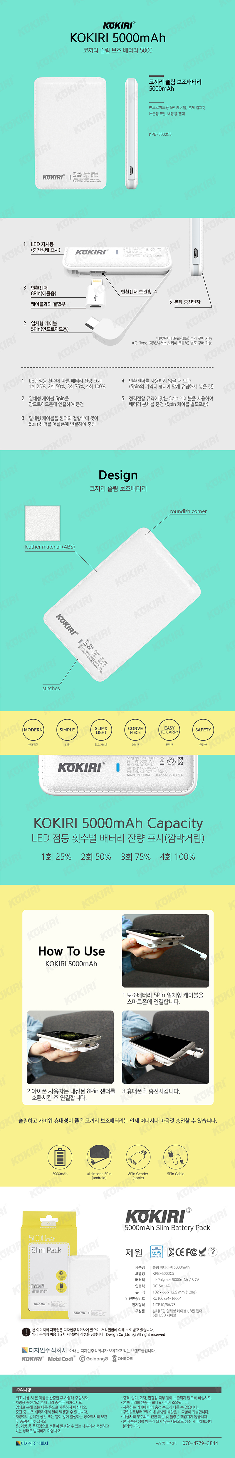 [행사]5,000mAh 코끼리 슬림 보조배터리