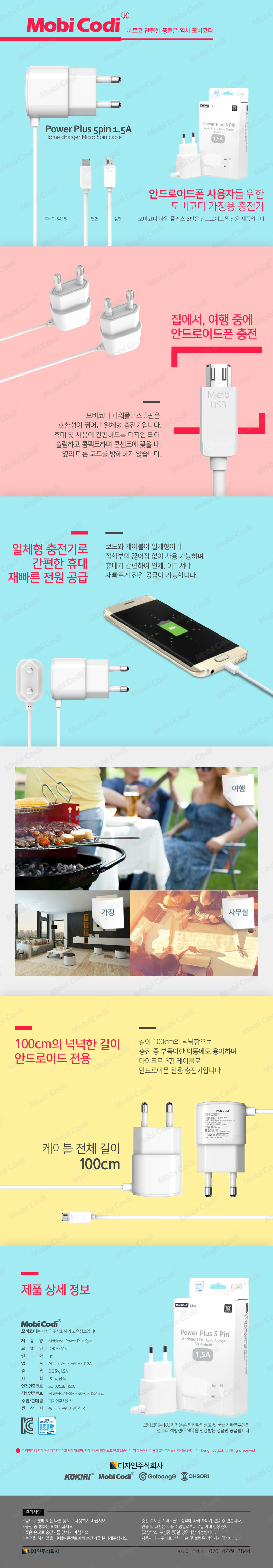 모비코디 파워플러스 마이크로 5핀 일체형 가정용 충전기 (1.5A)