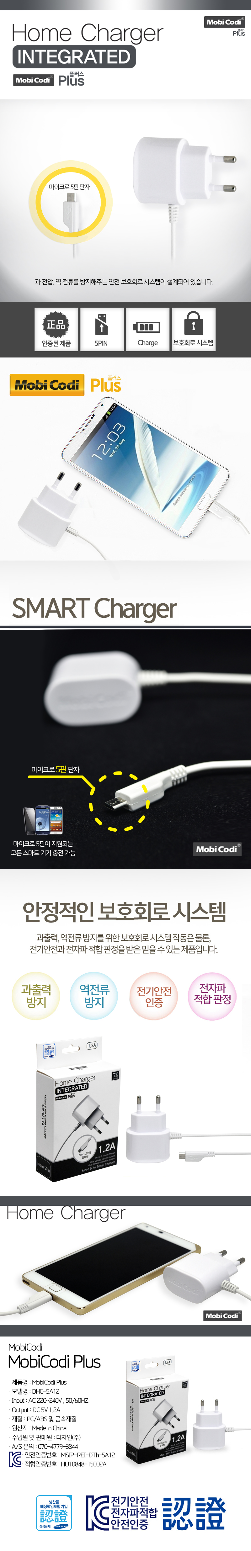 모비코디 플러스 마이크로 5핀 일체형 가정용 충전기 (1.2A)