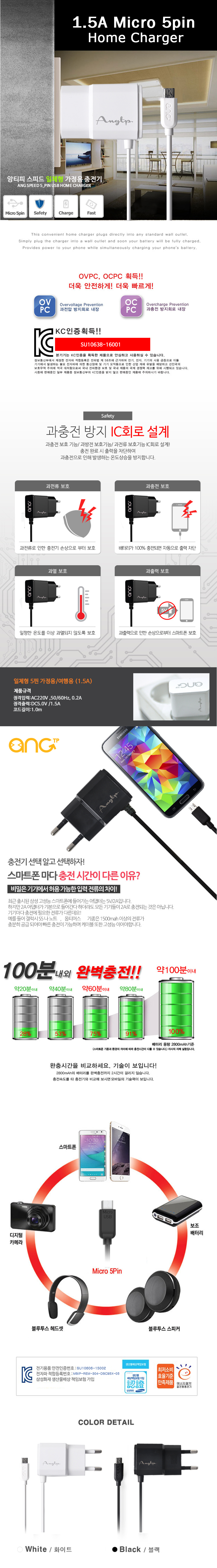앙티피 마이크로 5핀 일체형 가정용 충전기 (1.5A)