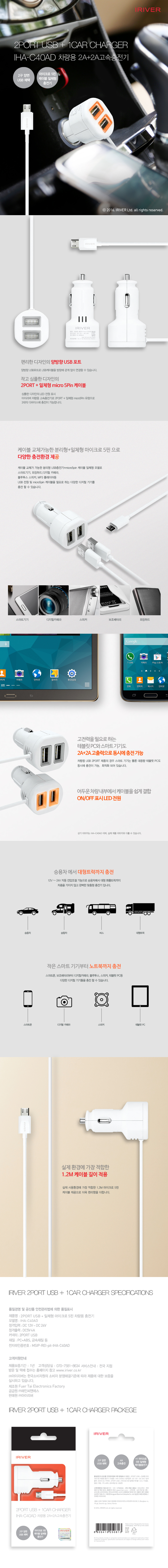아이리버 IHA-C40AD 마이크로 5핀 일체형 차량용 충전기 (2A)