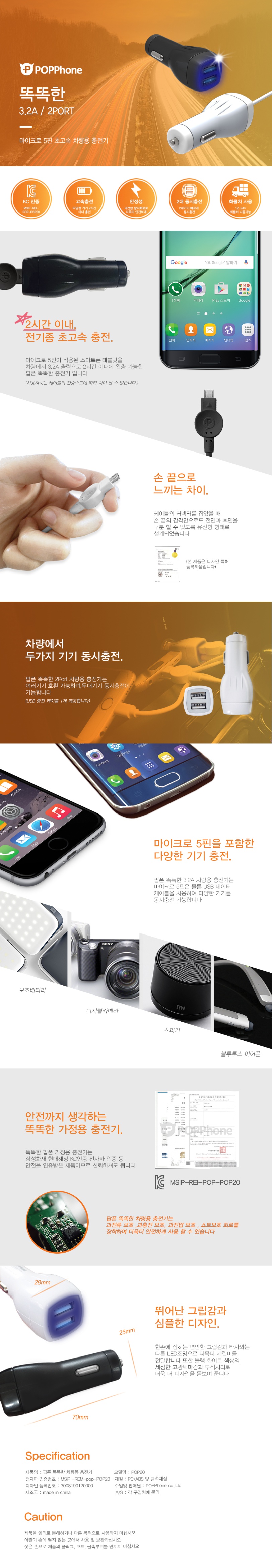 팝폰 CC09 5핀 분리형 차량용 충전기 (3.2A)