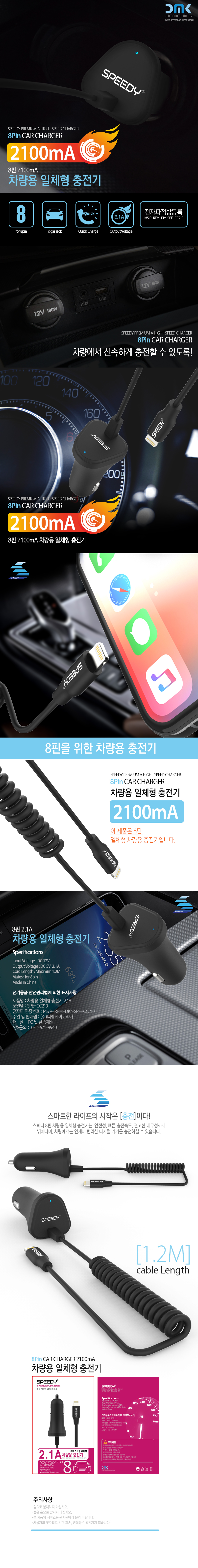 스피디 라이트닝 8핀 일체형 차량용 충전기 (2.1A)