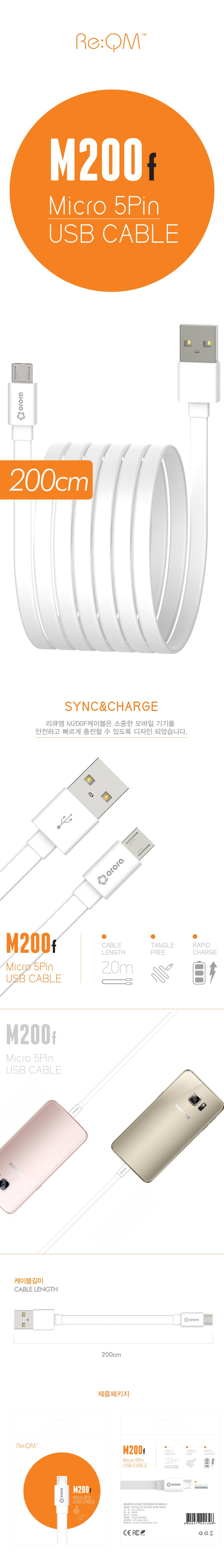 리큐엠 M200f 마이크로 5핀 플랫 케이블 (2M)