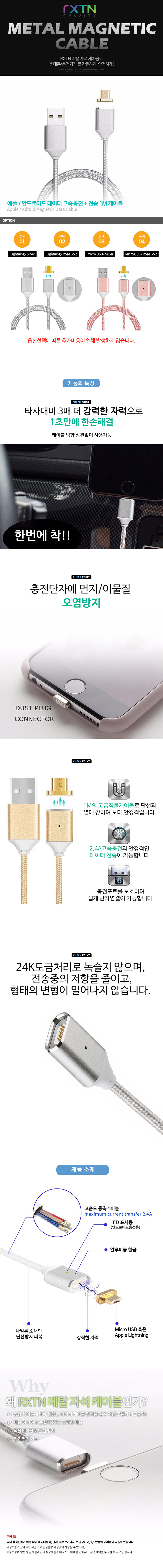 알엑스티엔 마이크로 5핀 메탈 자석 케이블 (1M)