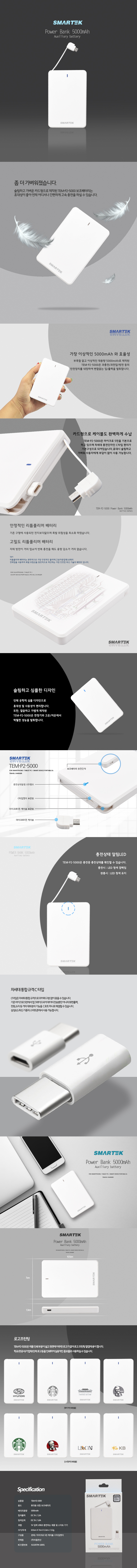 5,000mAh 스마텍 파워 뱅크 슬림 보조배터리