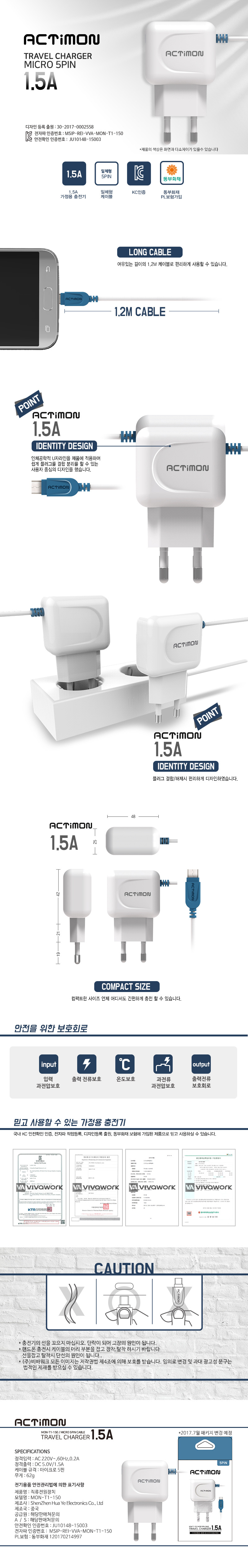 액티몬 5핀 일체형 가정용 충전기 (1.5A)