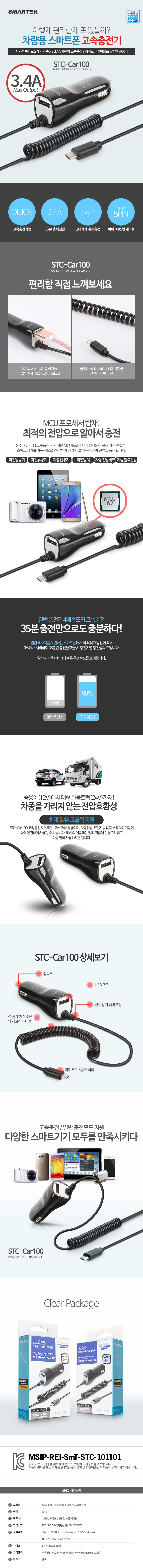 스마텍 마이크로 5핀 분리형 고속 차량용 충전기 (3.4A)