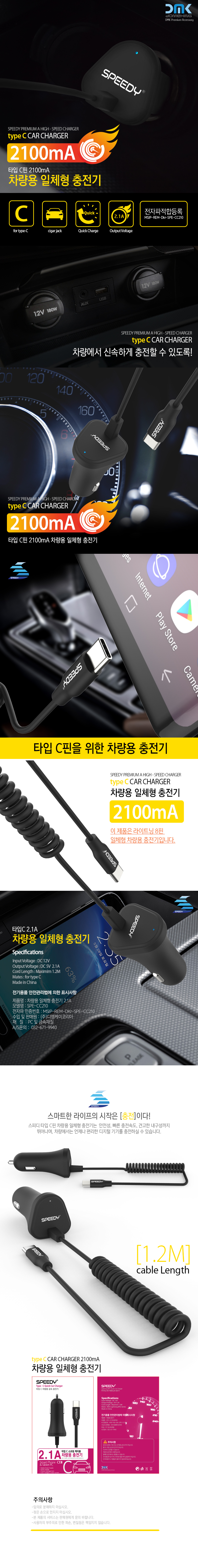 스피디 C타입 일체형 차량용 충전기 (2.1A)