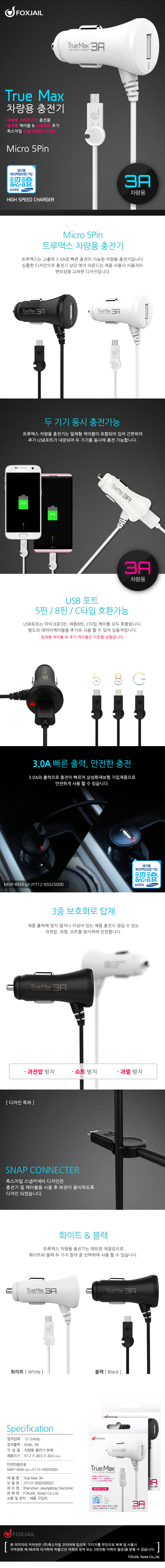 트루맥스 마이크로 5핀 & USB 1포트 차량용 충전기 (3A)