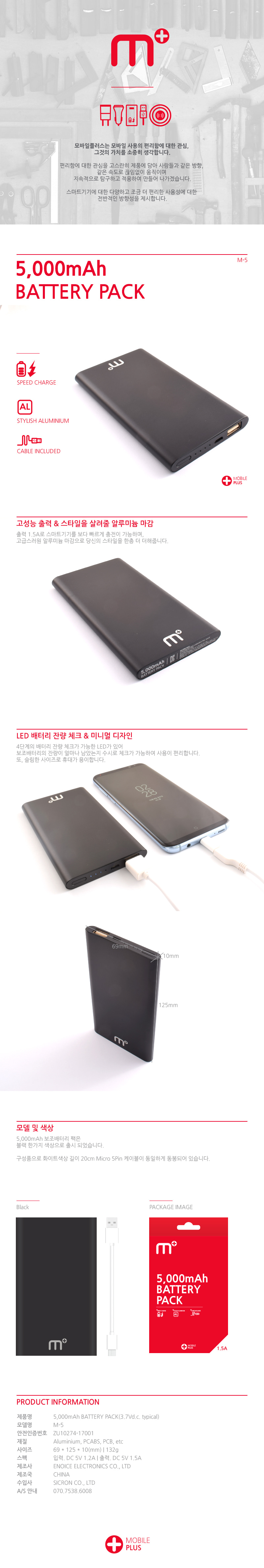 M+ 메탈 보조배터리 5000mAh (M-5)