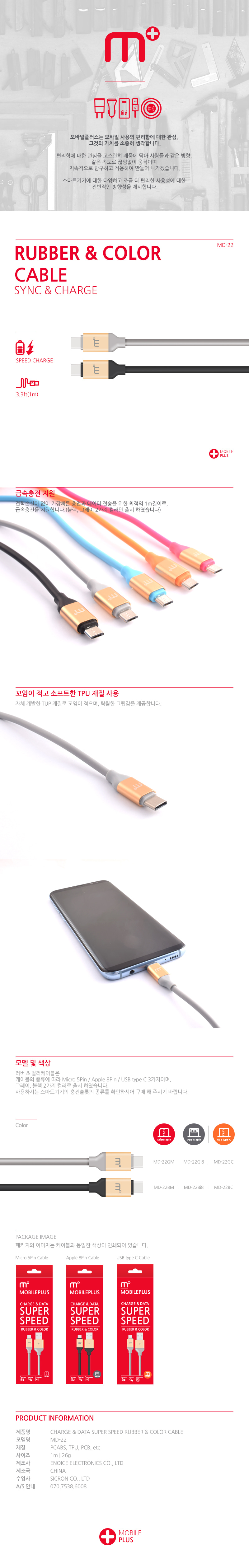 M+ 마이크로 5핀 러버&컬러 고속 충전 데이터 케이블 1m (MD-22M)