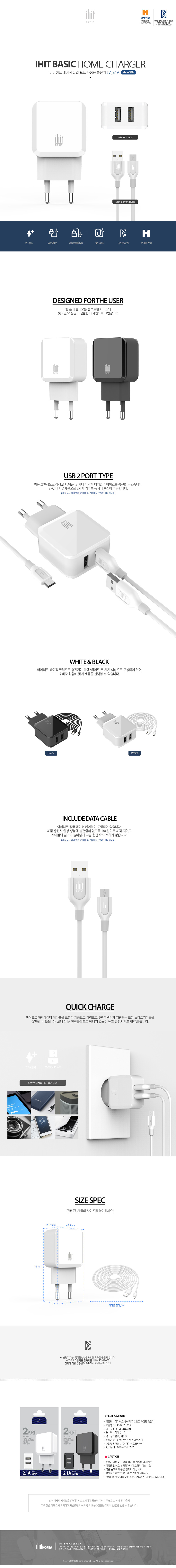 아이히트 베이직 5핀 듀얼포트 분리형 가정용 충전기 (2.1A)