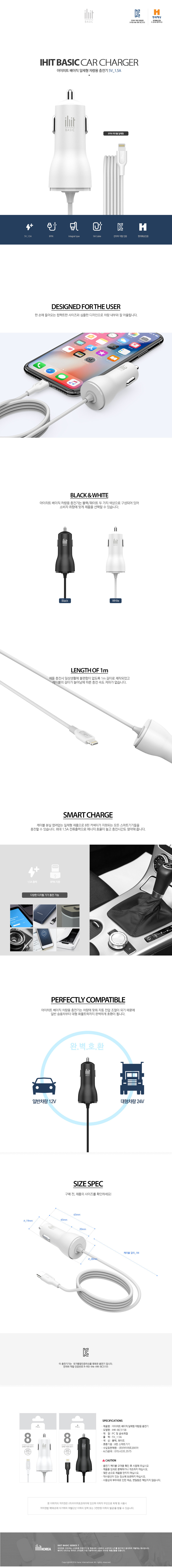 아이히트 베이직 8핀 일체형 차량용 충전기 (1.5A)