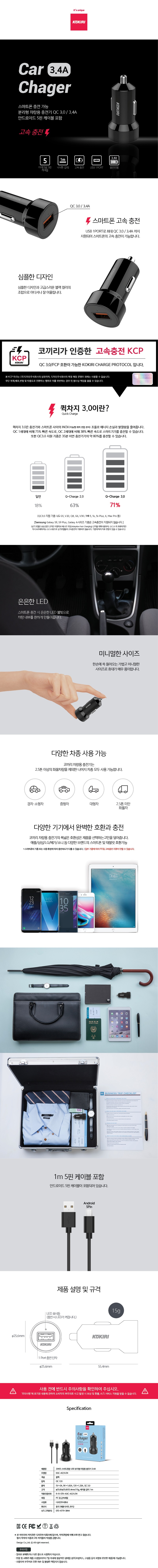 코끼리 퀵3.0 5핀 분리형 차량용 충전기 (3.4A)