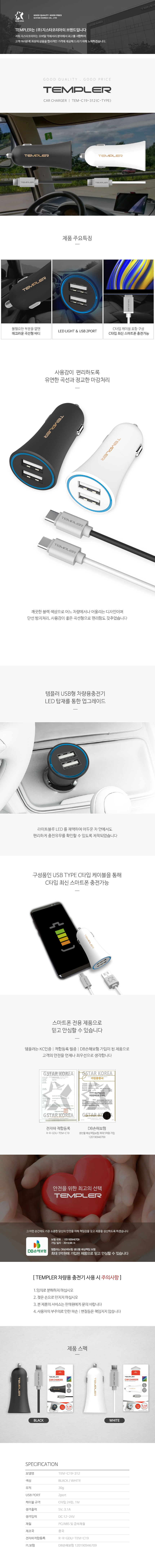 템플러 C타입 USB 2포트 분리형 차량용 충전기 (3.1A)