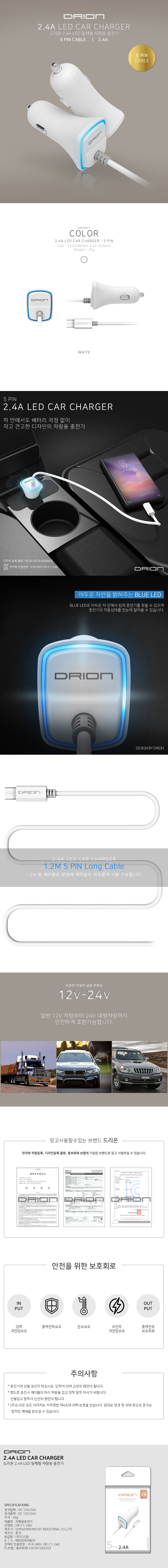 드리온 LED 5핀 일체형 차량용 충전기 2.4A (DR-C1-240-5P)