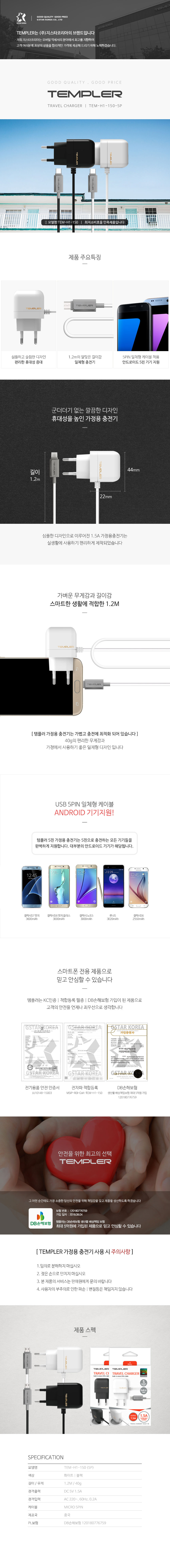 ★행사상품★ 템플러 5핀 일체형 가정용 충전기 (1.5A)