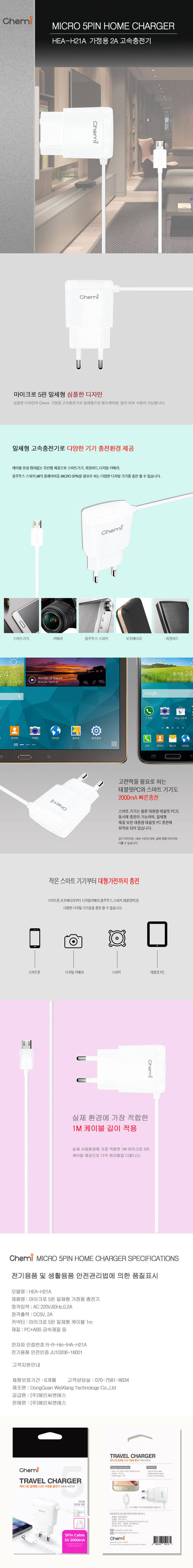 Chemi HEA-H21A 5핀 일체형 가정용 충전기 (2A)