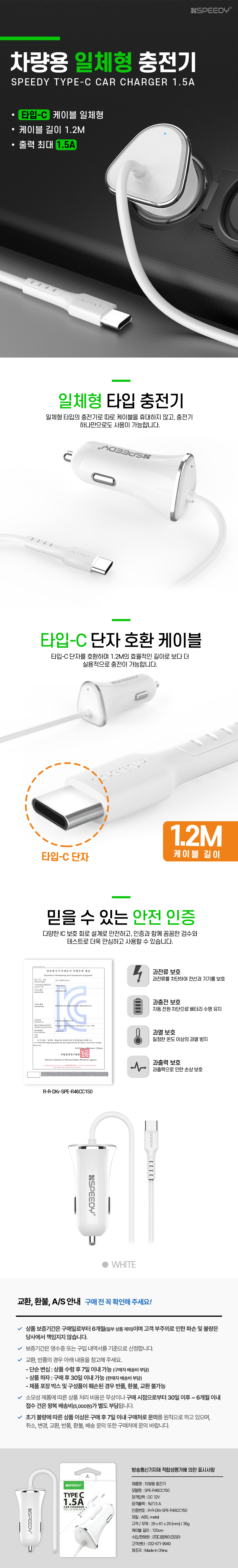 NEW 스피디 C타입 일체형 차량용 충전기 (1.5A)