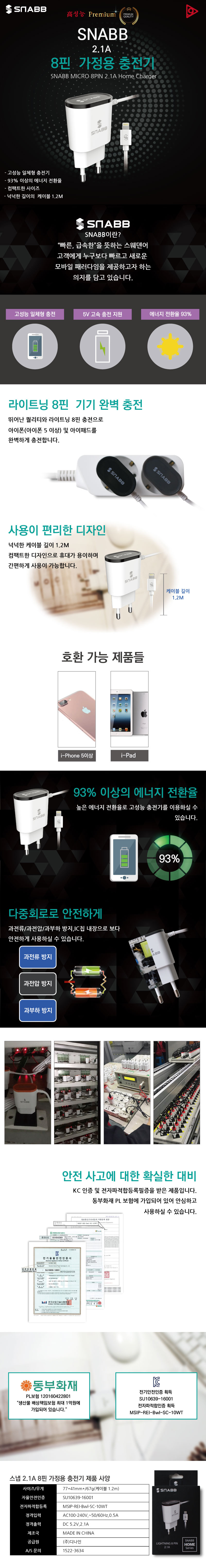 스냅 8핀 일체형 가정용 충전기 2.1A