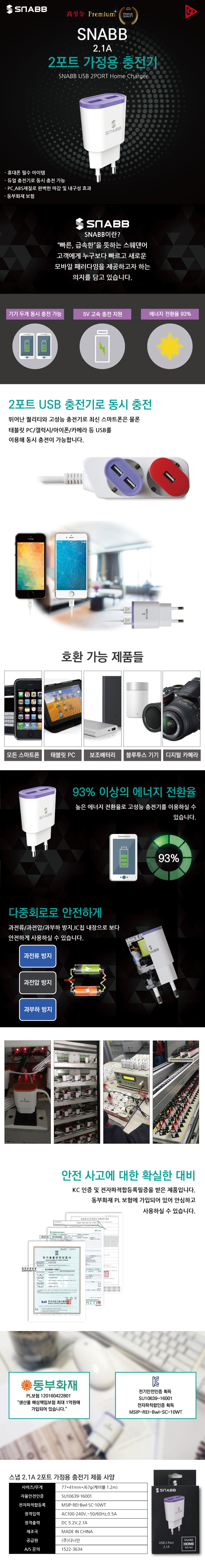 스냅 USB 2포트 분리형 가정용 충전기 2.1A