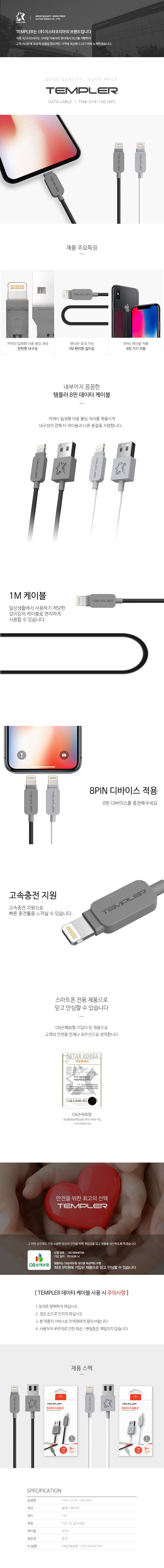 템플러 8핀 고속 충전 데이터 케이블 (1m)