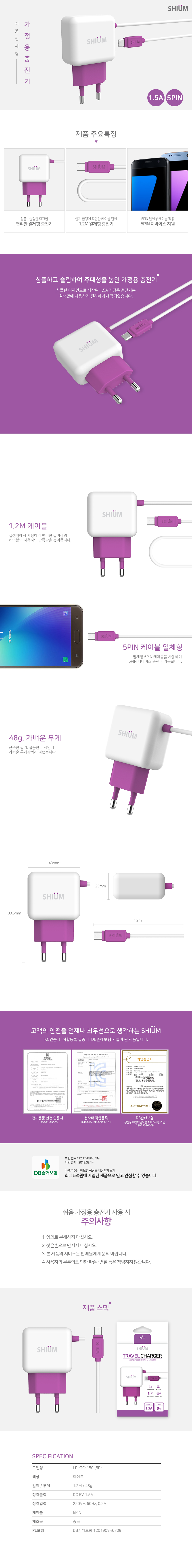 쉬움 5핀 일체형 가정용 충전기 (1.5A)