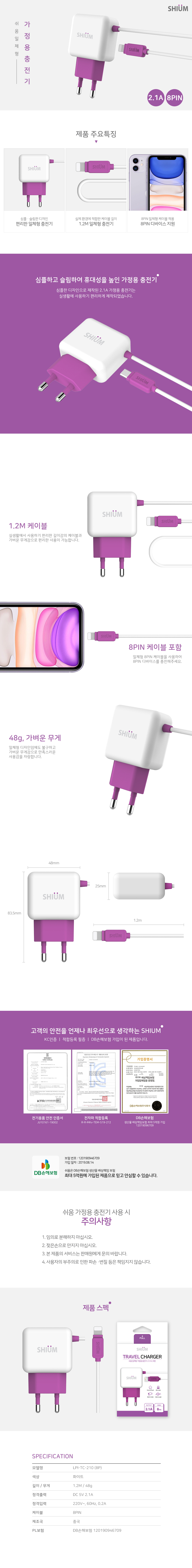 쉬움 8핀 일체형 가정용 충전기 (2.1A)