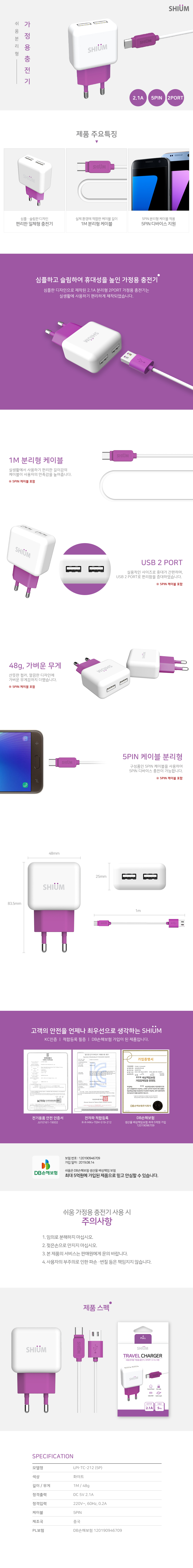 쉬움 5핀 USB 2포트 분리형 가정용 충전기 (2.1A)