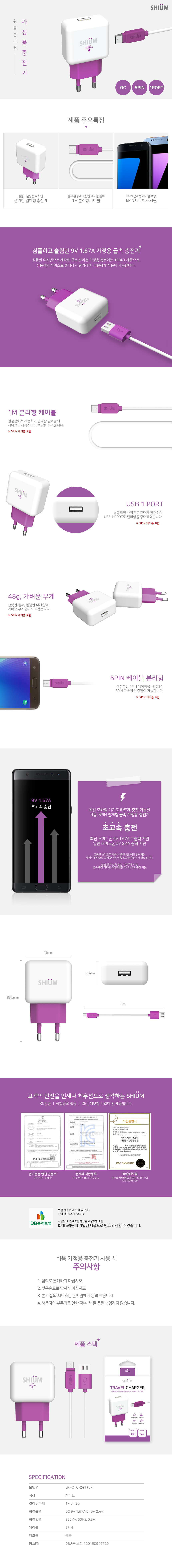 쉬움 5핀 분리형 가정용 급속 충전기 (2.4A)