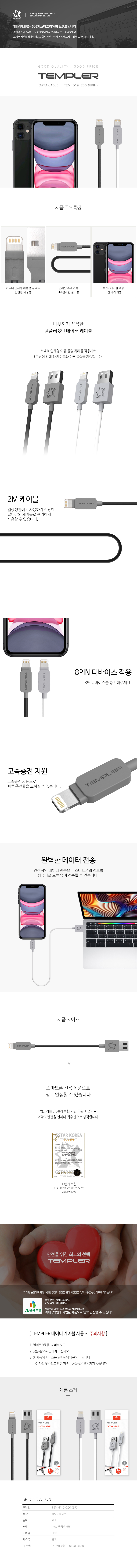 템플러 8핀 고속 충전 데이터 케이블 (2m)