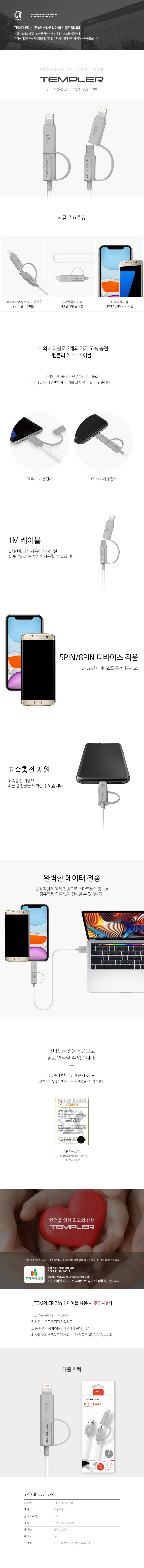 템플러 2in1 5핀+8핀 고속 충전 데이터 케이블 (1m)