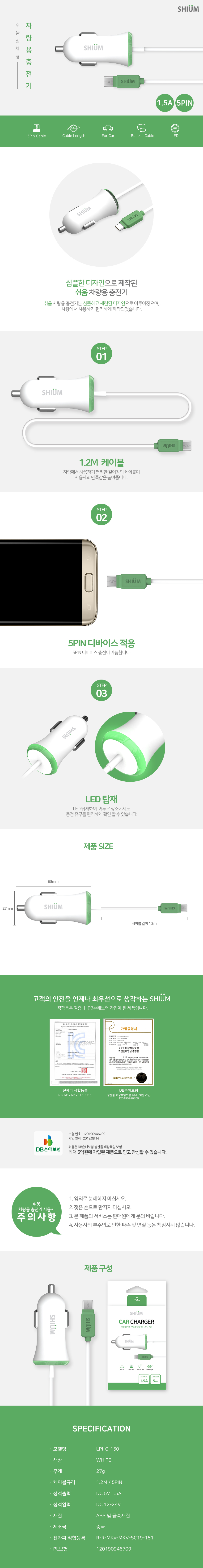 쉬움 5핀 일체형 차량용 충전기 (1.5A)