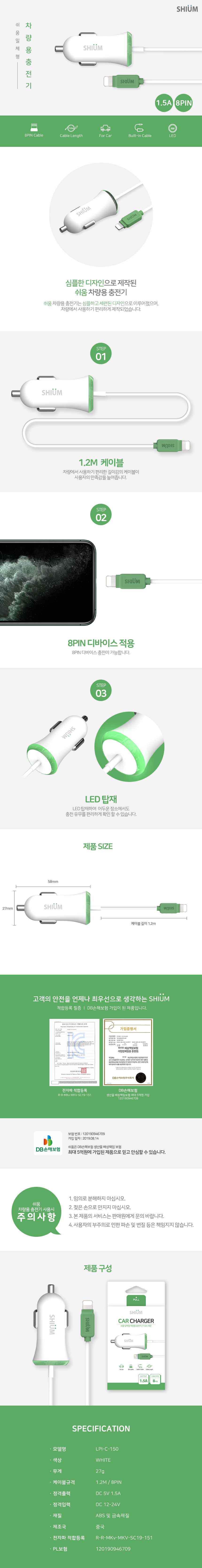 쉬움 8핀 일체형 차량용 충전기 (1.5A)
