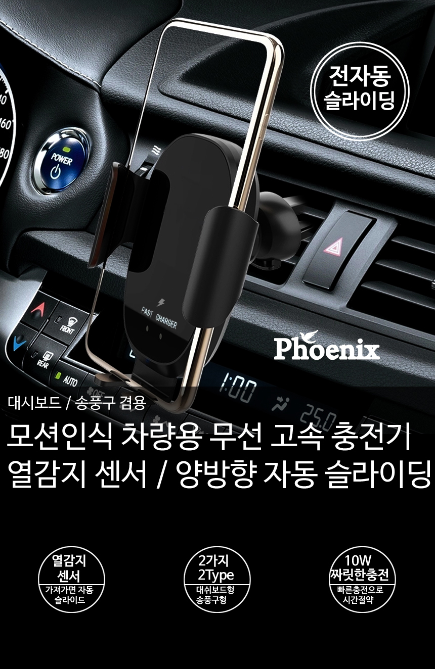 피닉스 전자동 오토 슬라이딩 차량용 고속 무선 충전 거치대 (RCA-7000)