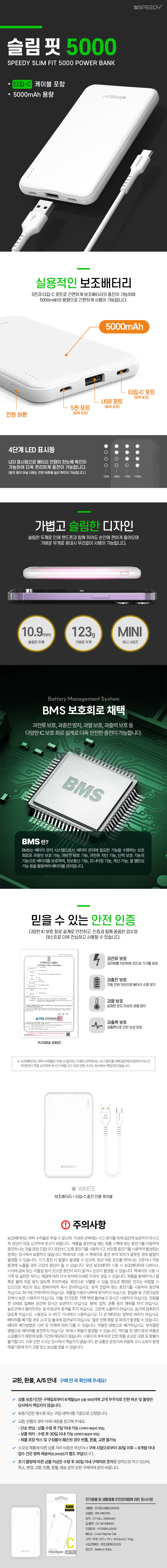 스피디 슬림핏 보조배터리 5,000mAh (C타입케이블 포함)