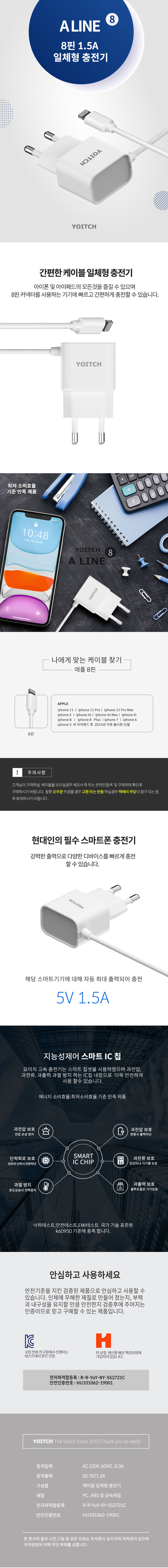 요이치 A라인 8핀 일체형 가정용 충전기 (1.5A)