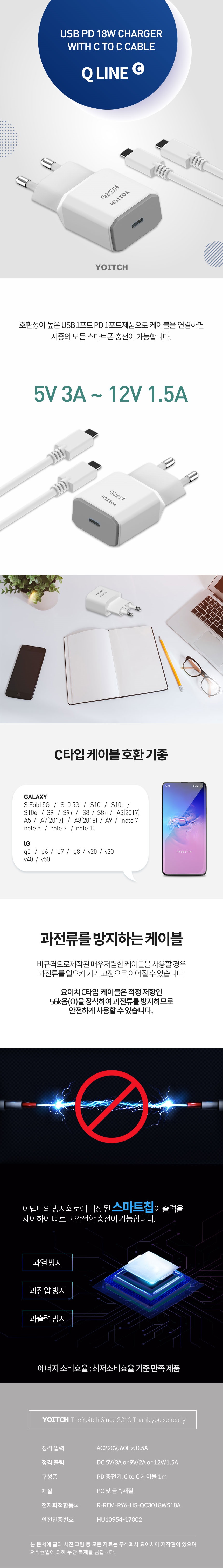 요이치 Q라인 PD 고속 18W CtoC 1포트 가정용 충전기