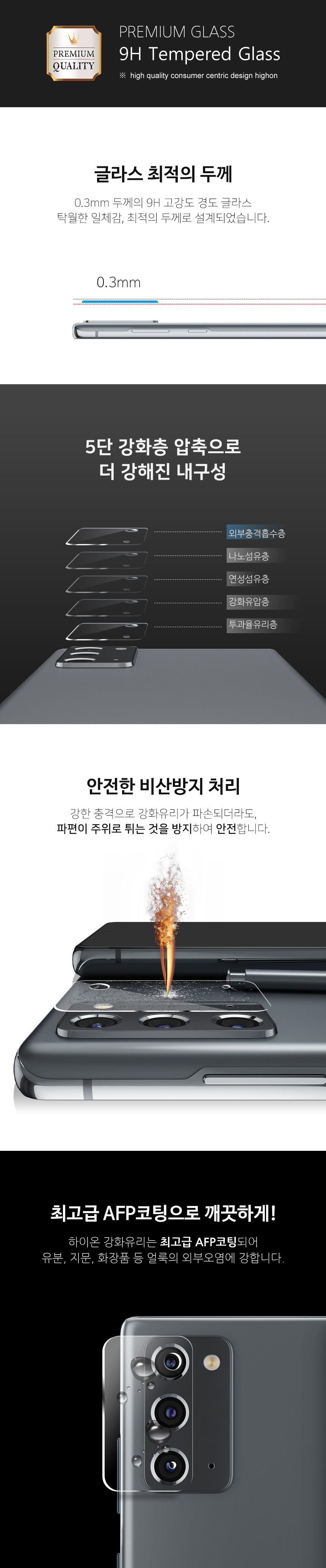하이온 L글라스 후면 카메라 9H 강화유리 필름 (3매)