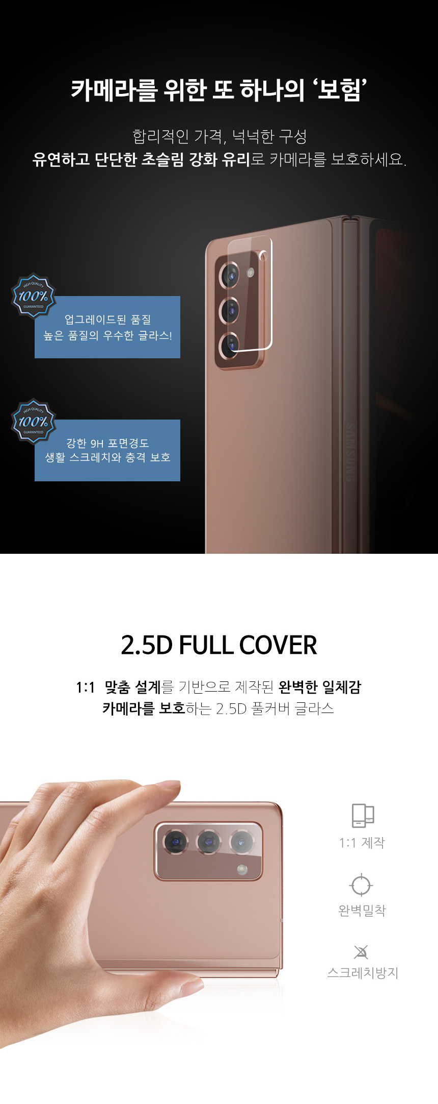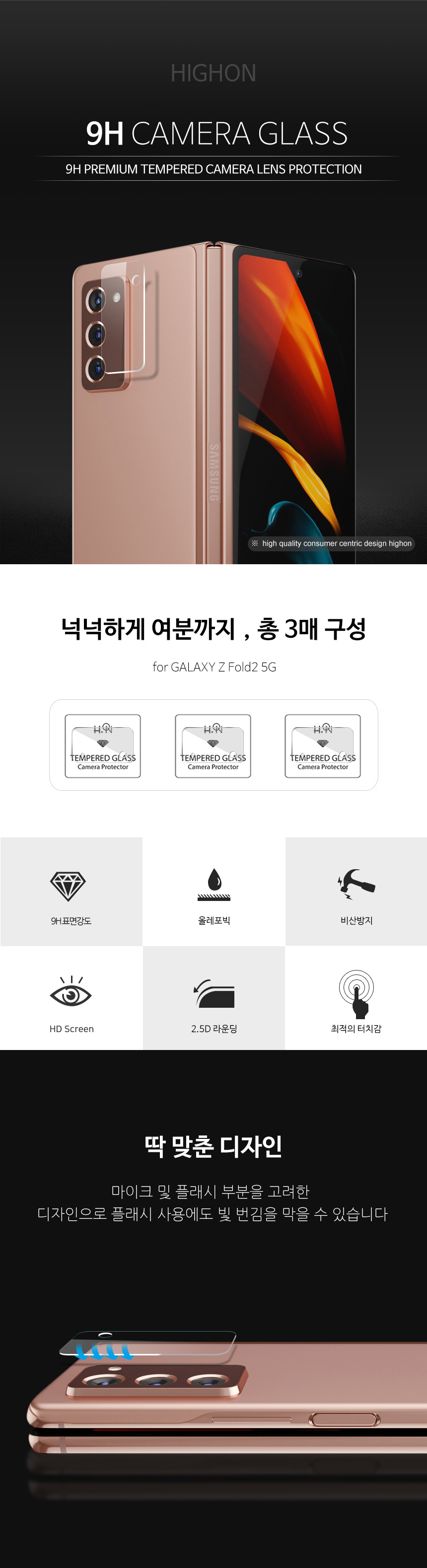 하이온 L글라스 후면 카메라 9H 강화유리 필름 (3매)
