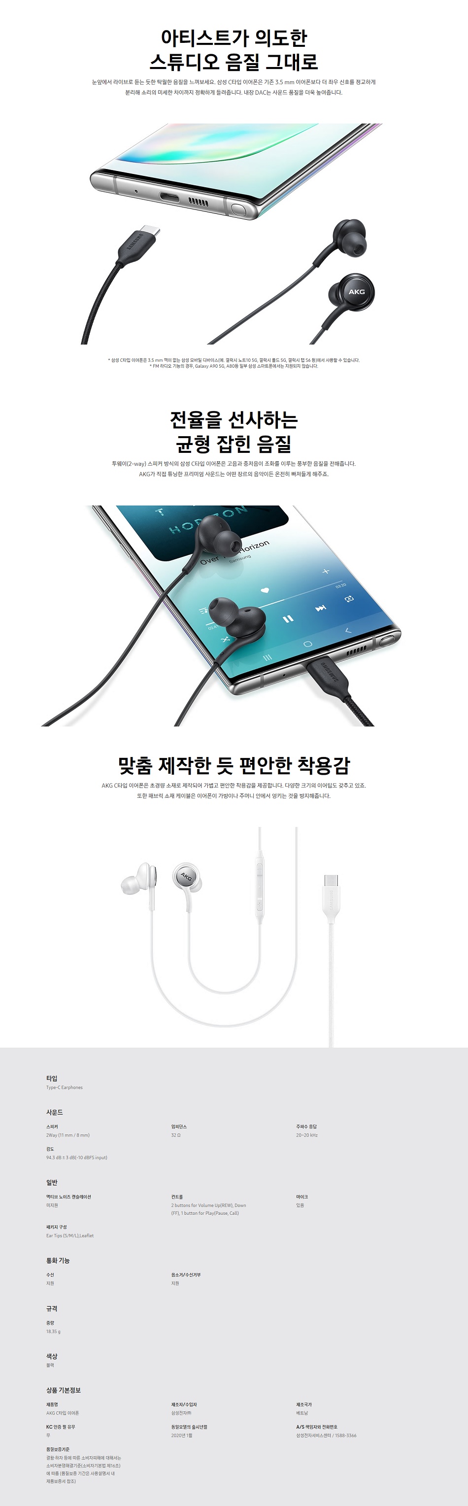 ※ 삼성 C타입 이어폰은 3.5mm 잭이 없는 모바일 디바이스에서 사용할수 있습니다.