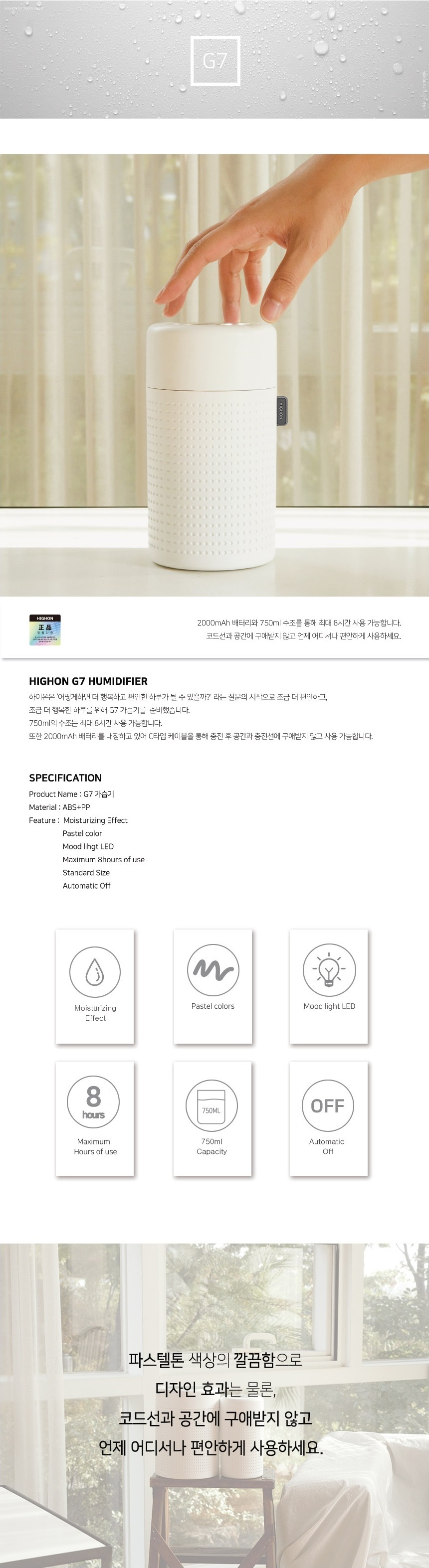 하이온 G7 무선 미니 가습기