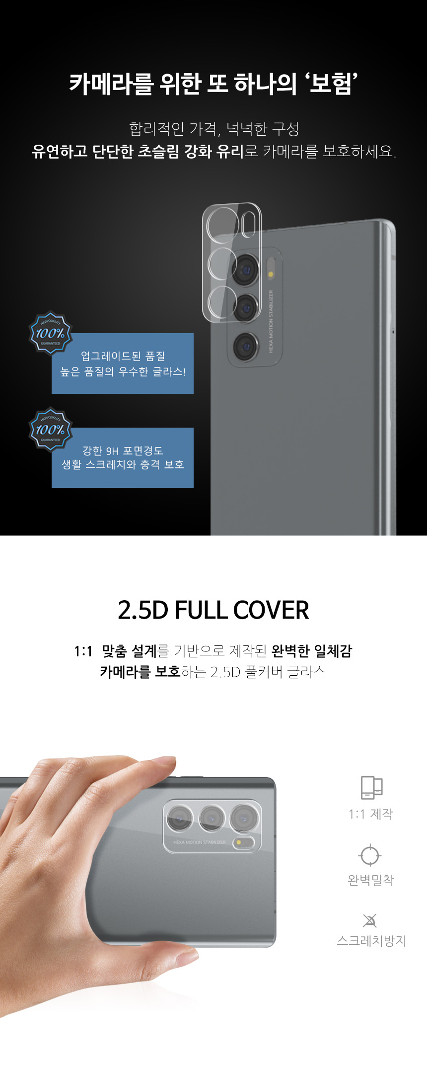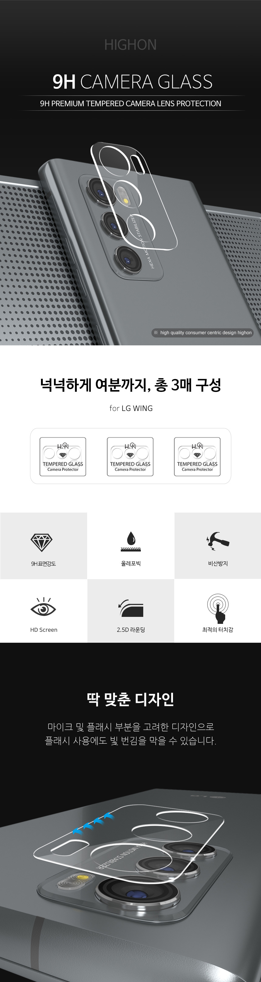 하이온 L글라스 후면 카메라 9H 강화유리 필름 (3매)
