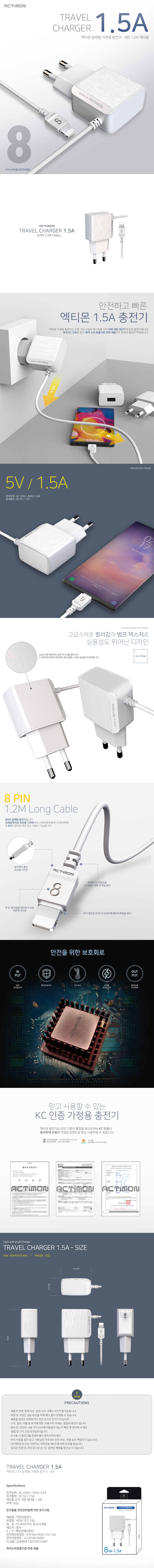 액티몬 NEW 8핀 일체형 가정용 충전기 1.5A (MON-TC2-150-8P)